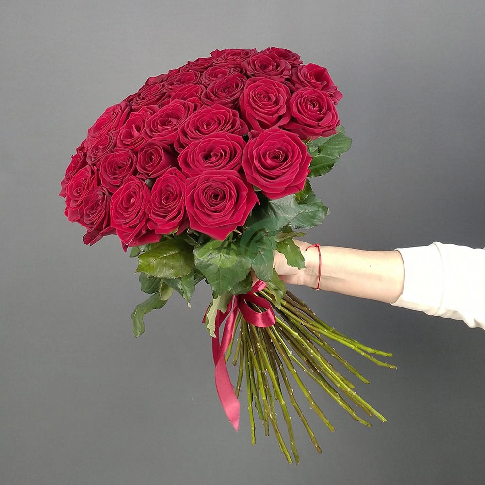 • Роза - 35 штук, цвет - красный, длина стебля - 60 см;